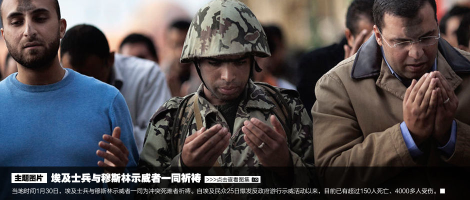 埃及士兵与穆斯林示威者共同祈祷