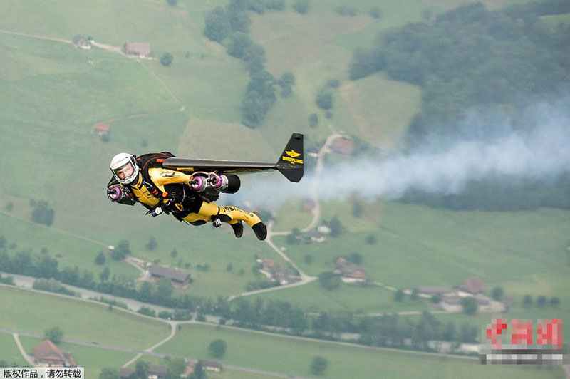 瑞士“火箭侠”与客机赛跑:当地时间6月22日,瑞士“钢铁侠”罗西(Yves Rossy)在一架客机的陪伴下,飞越瑞士四森林州湖。据悉,罗西是全球第一位成功以喷气引擎为动力进行自由飞行的人,这是他首次与客机同飞。